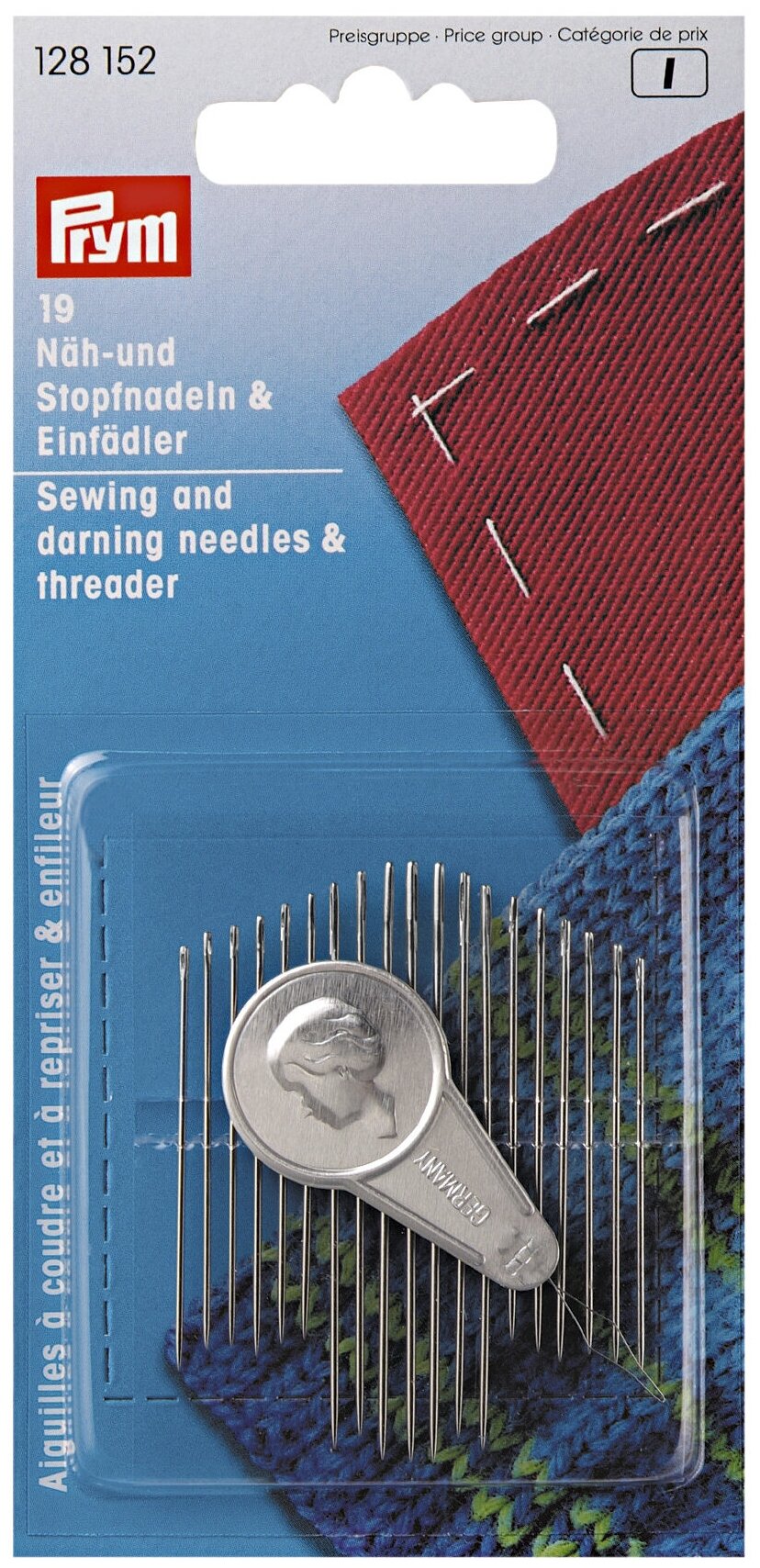 Иголки для шитья и штопки, набор с нитковдевателем, Prym, 128152, 19 шт