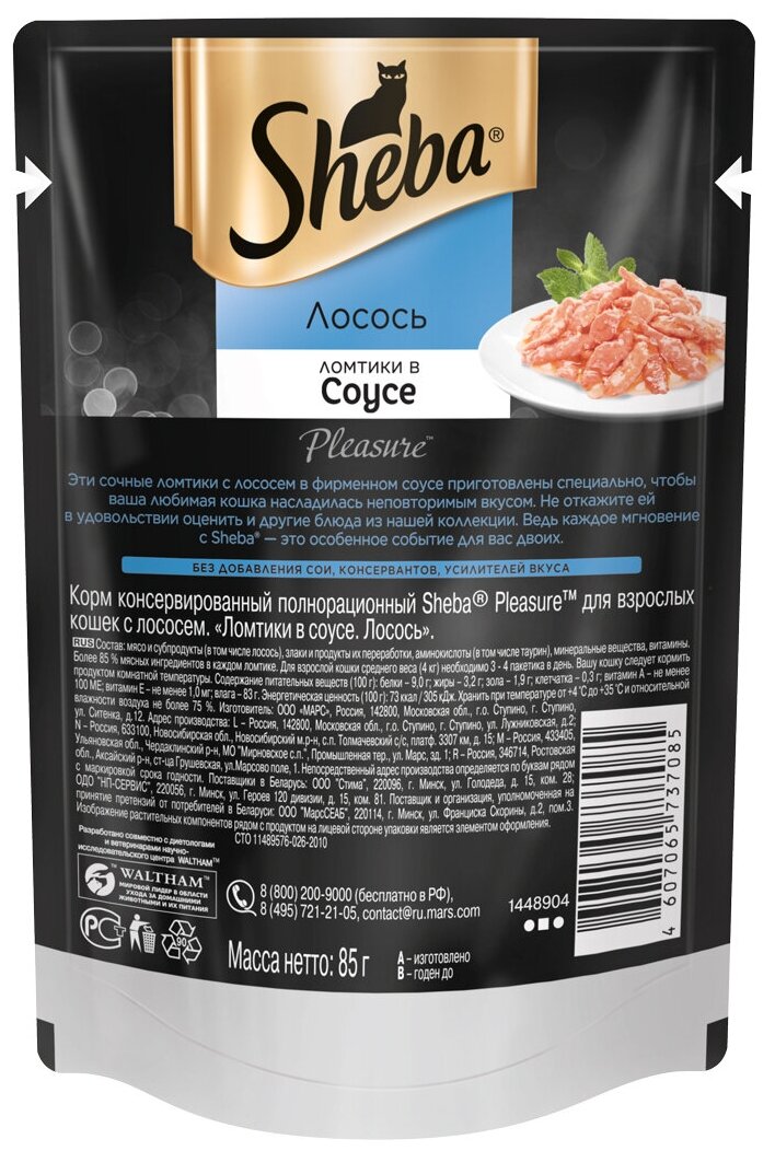 Sheba влажный корм для взрослых кошек всех пород, ломтики в соусе, лосось (24шт в уп) 85 гр