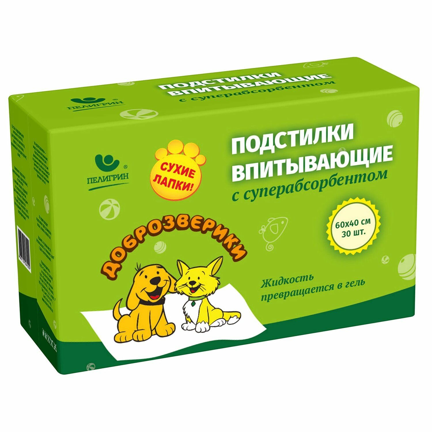 Пелигрин Доброзверики Подстилки впитывающие д/животных с суперабсорбентом 60*40*12шт