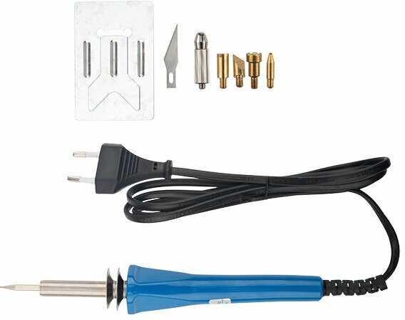 Выжигатель Rexant (набор паяльник-выжигатель), 6 насадок, подставка, 230 В/30 Вт 12-0183 .