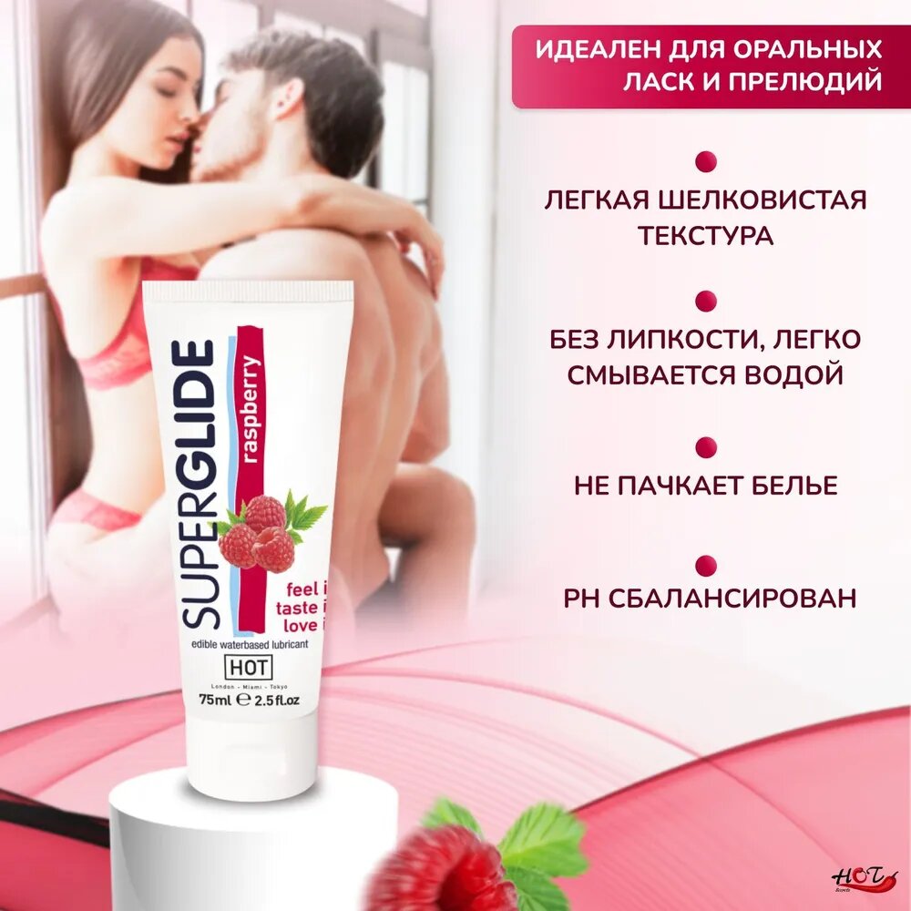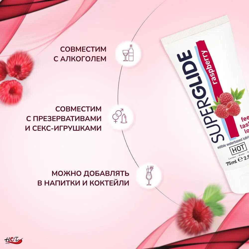 Съедобная смазка на водной основе HOT Superglide для орального секса со вкусом малины 75 мл