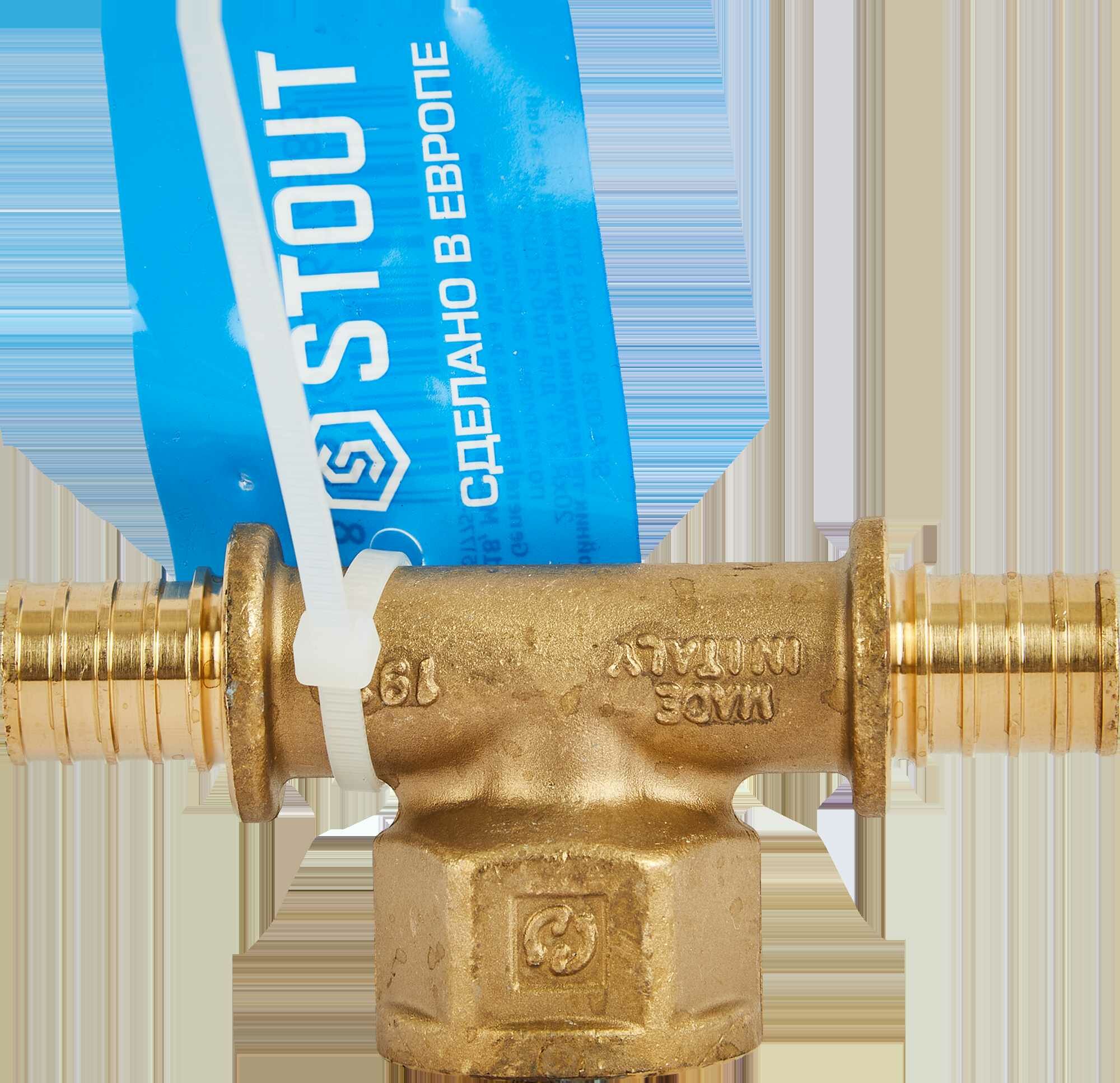 Тройник-переходник Stout с внутренней резьбой 20xR 3/4" для труб из сшитого полиэтилена аксиальный