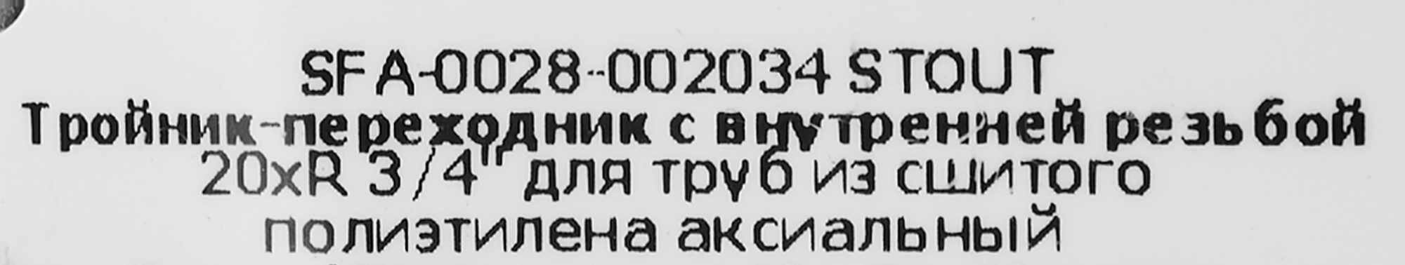 Купить Тройник STOUT SFA-0028-002034 20x3/4"x20 аксиальное - резьба 1 шт.