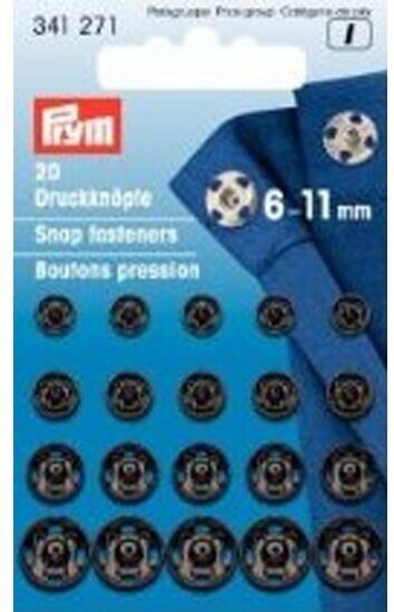 Пришивные кнопки латунь 6-11мм, черный, 20шт PRYM 341271