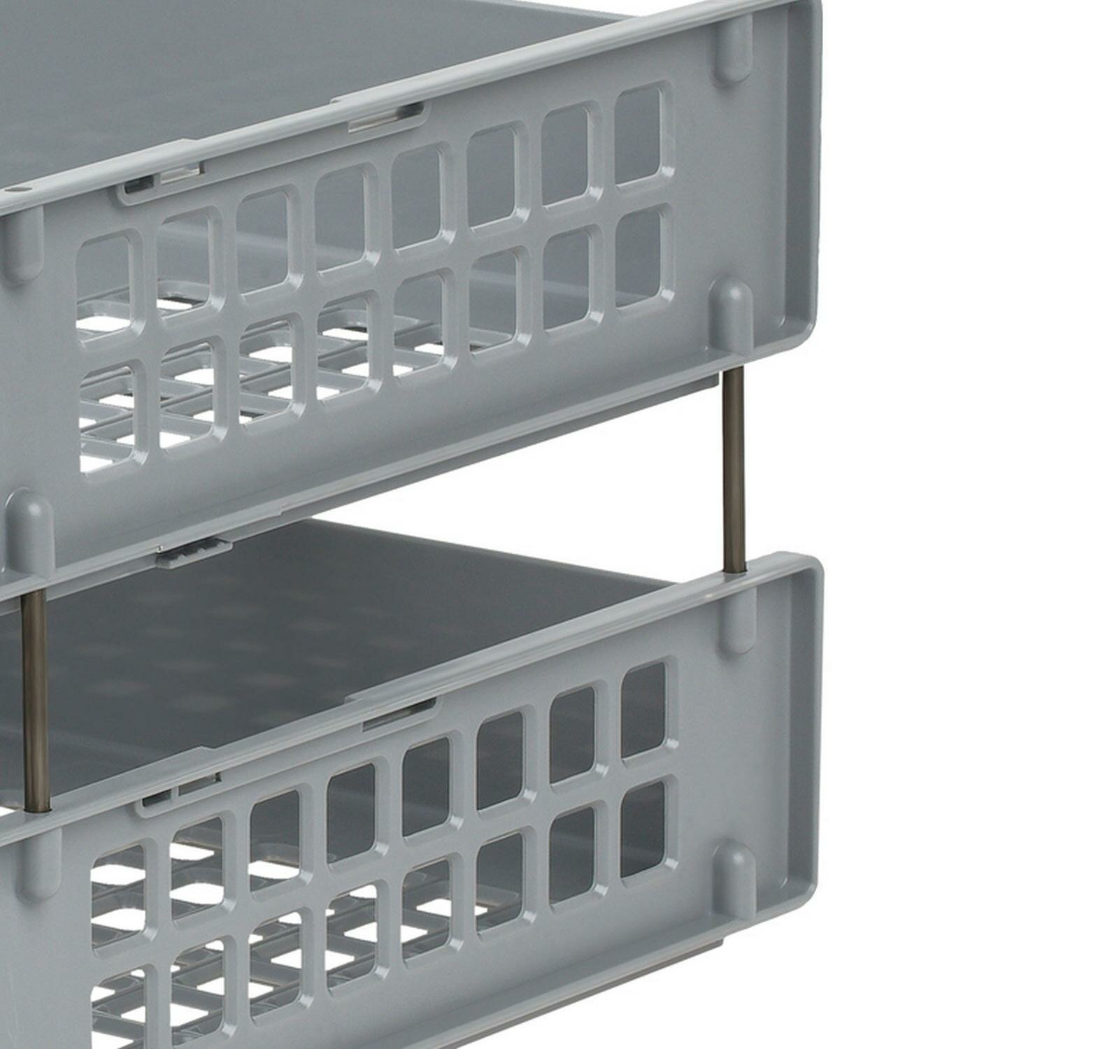 Лоток для бумаг горизонтальный СТАММ "Strong", набор 2шт., на метал. стержнях, серый, 96325