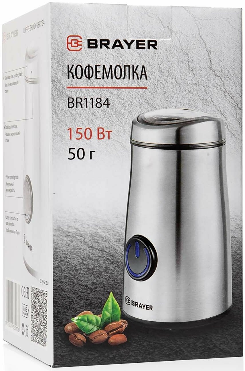 BRAYER Кофемолка BRAYER BR1184, 150 Вт, 50 г, серебристая