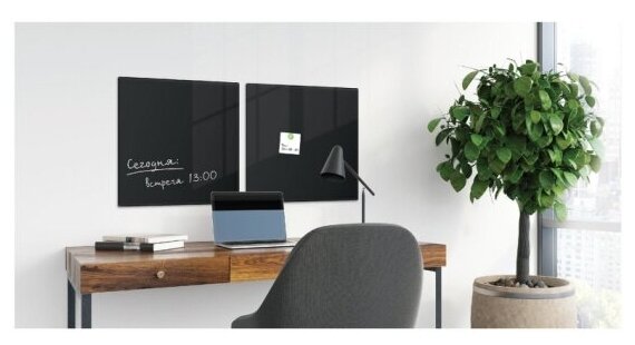 Доска магнитно-маркерная стеклянная 45х45 см, комплект 2 шт., 3 магнита, черная, BRAUBERG, 236736