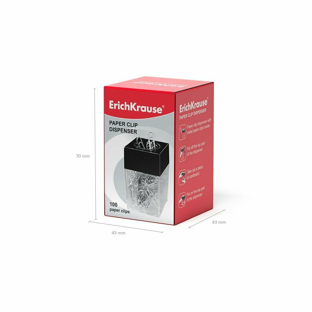 ErichKrause Диспенсер для скрепок магнитный ErichKrause, в наборе 100 цветных скрепок