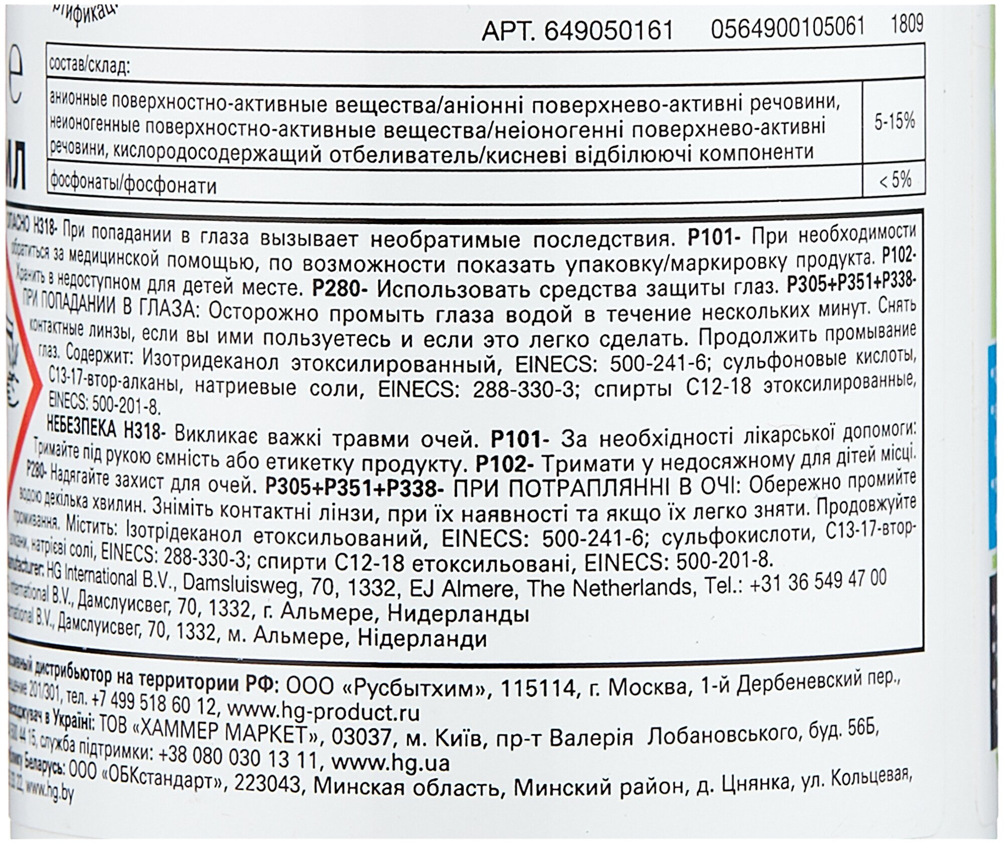 Купить HG Экстра сильное средство для предварительной обработки пятен и разводов