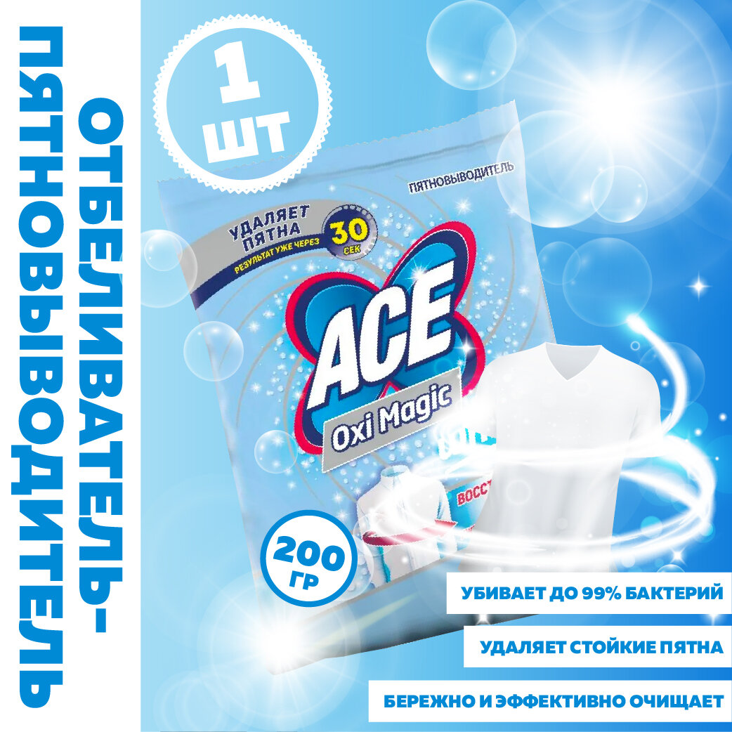 Купить Пятновыводитель Ace Oxi Magic White, 200 мл, 200 г