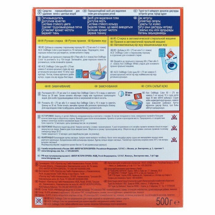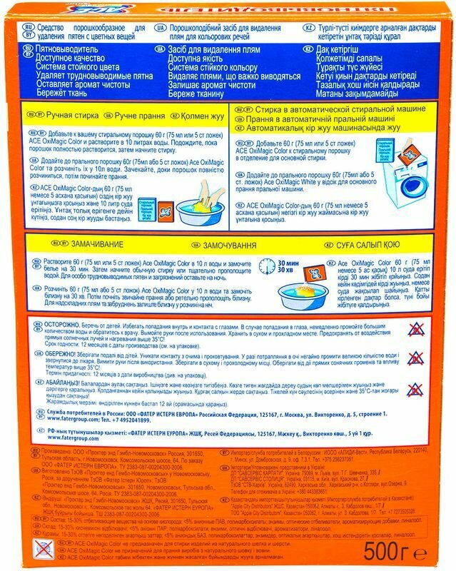 Купить Пятновыводитель Ace Oxi Magic Color, 14 мл, 500 г