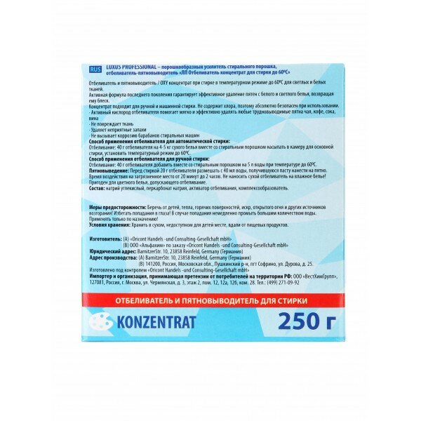 Luxus Отбеливатель концентрированный для стирки до 60 градусов Professional, 250гр