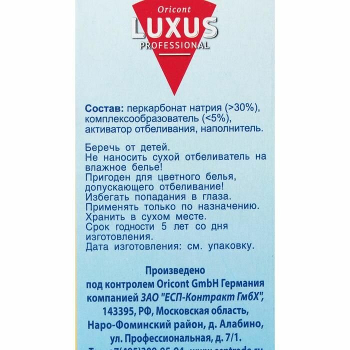 Отбеливатель Luxus Professional до 60 градусов, 250 мл, 250 г
