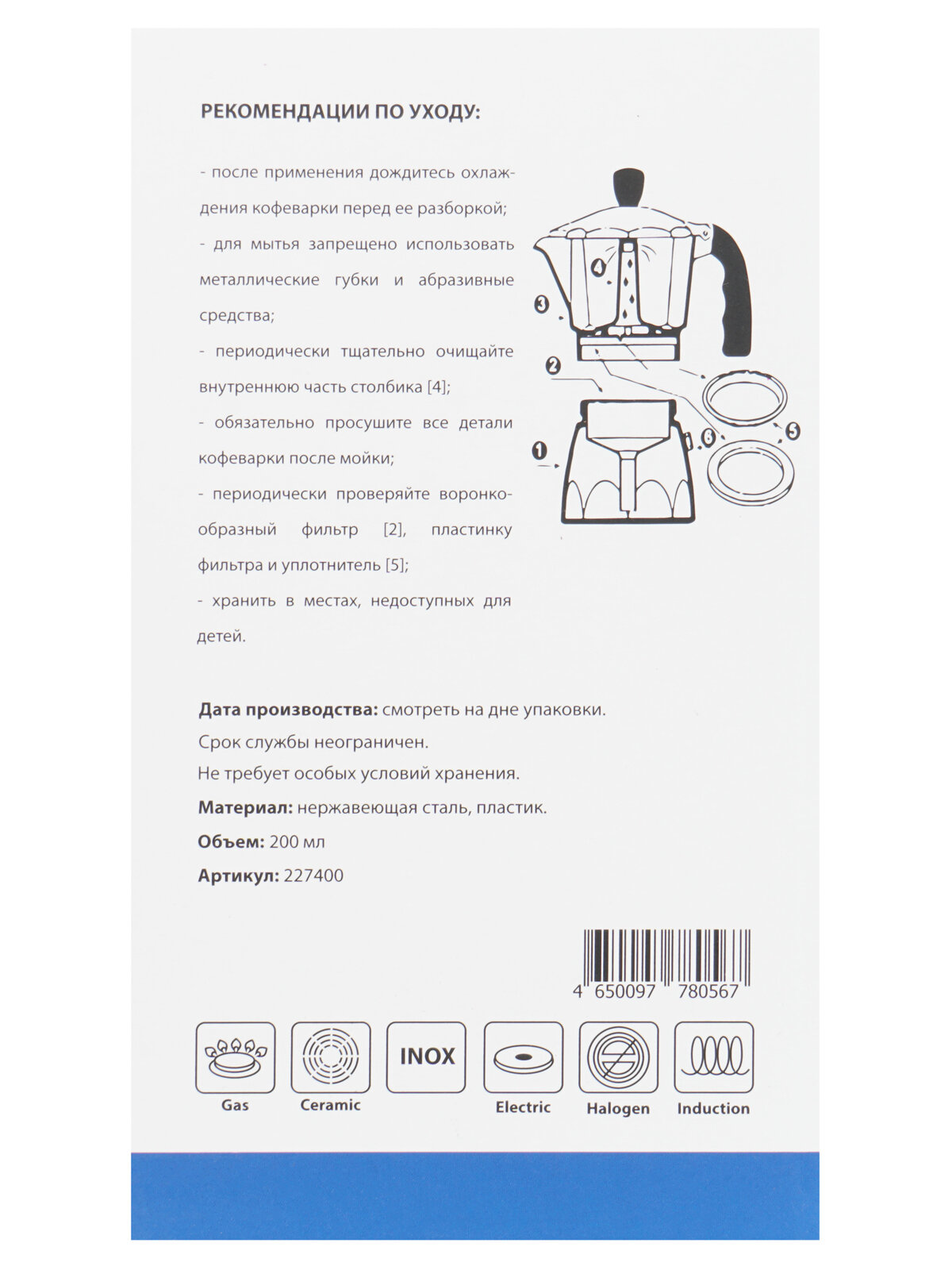 Гейзерная кофеварка Italco Induction 4 порции 227400 .