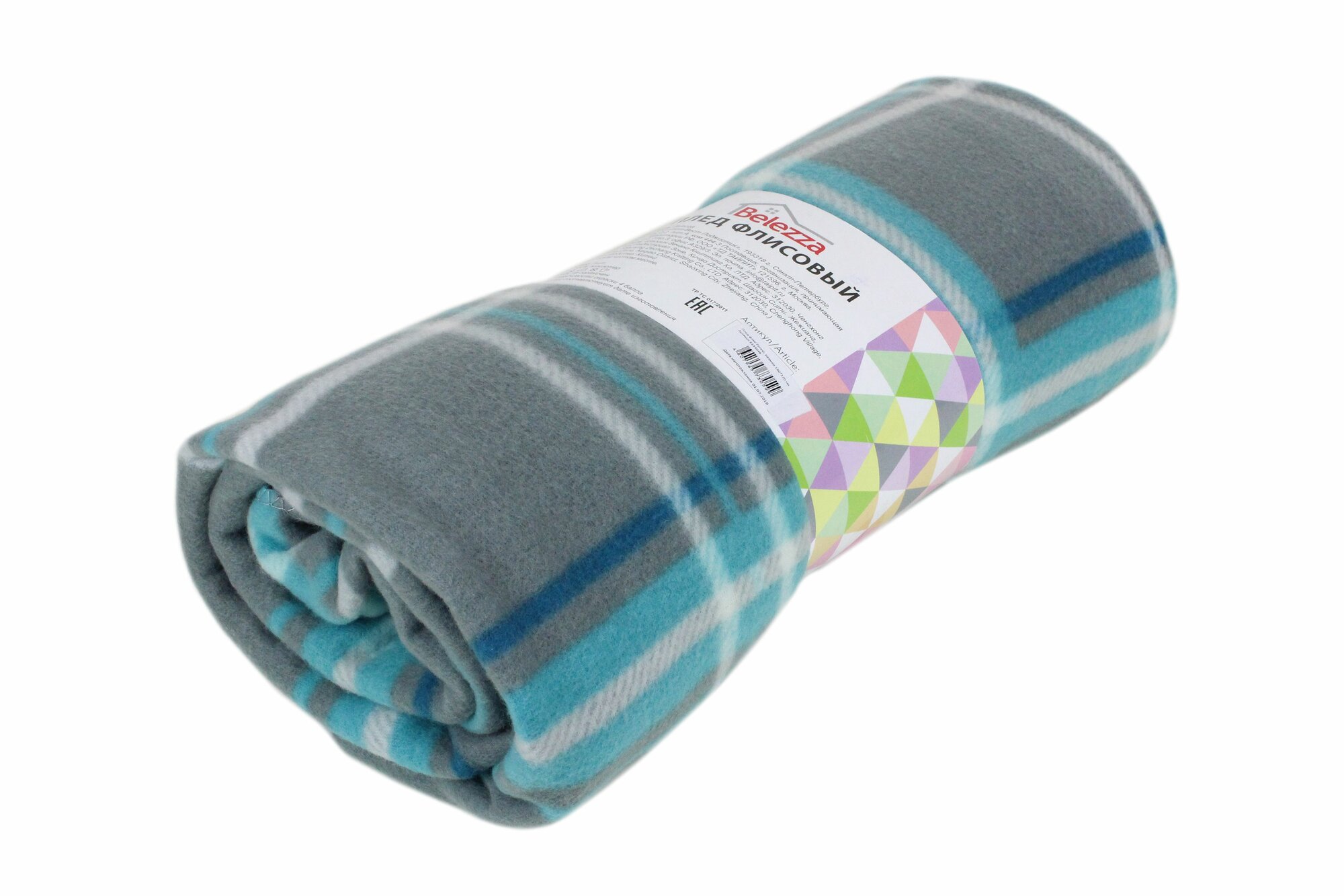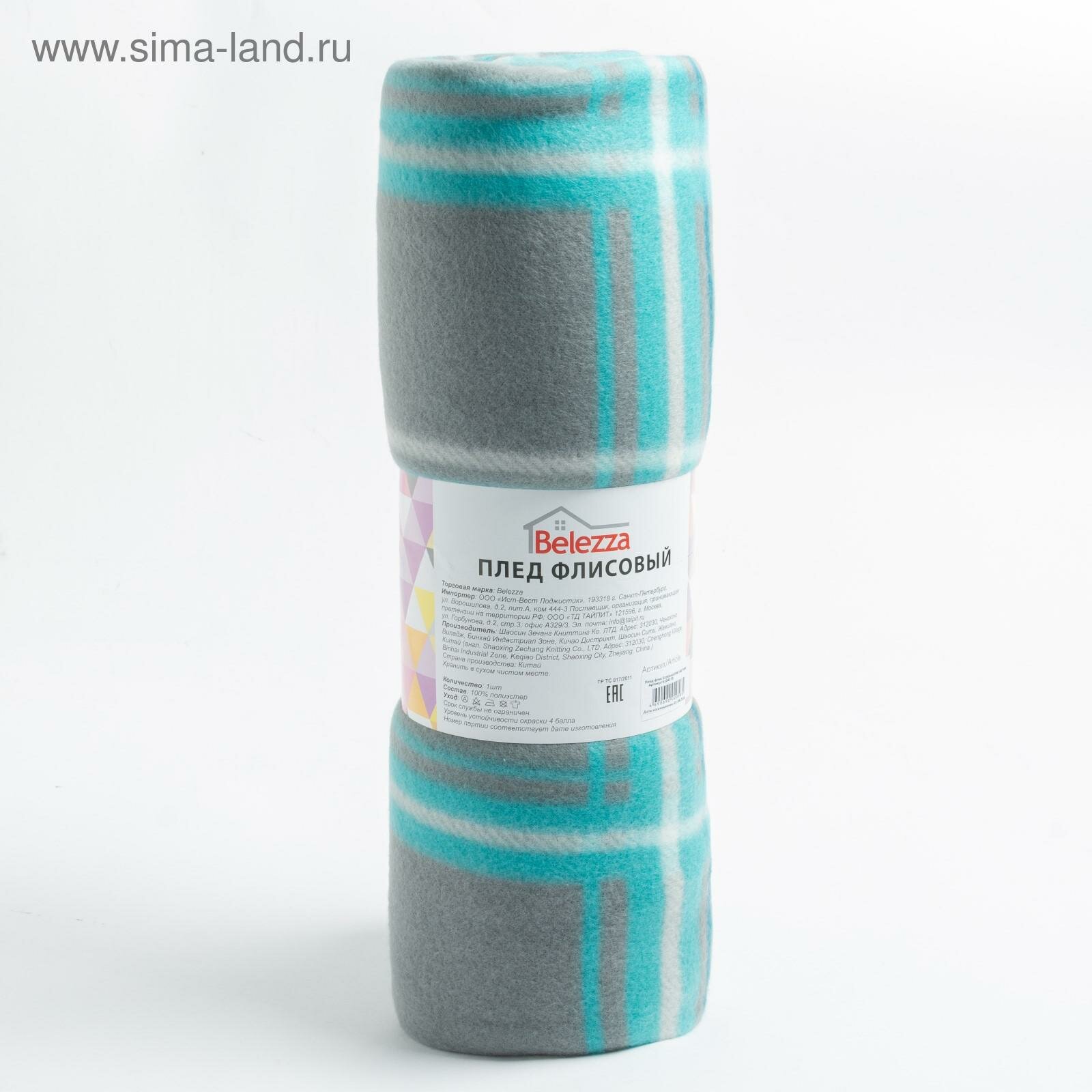 Belezza Плед Scotland 098 серо-бирюзовый 140х200см флис 180г/м пэ 100%