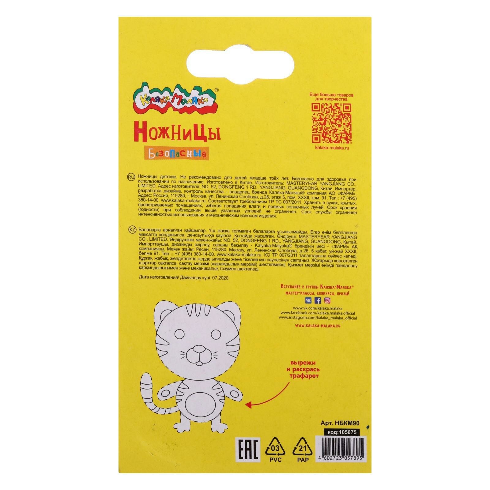 ножницы 90мм детские Каляка-Маляка безопасные пластик с метал/лезвиями НБКМ90 2371041