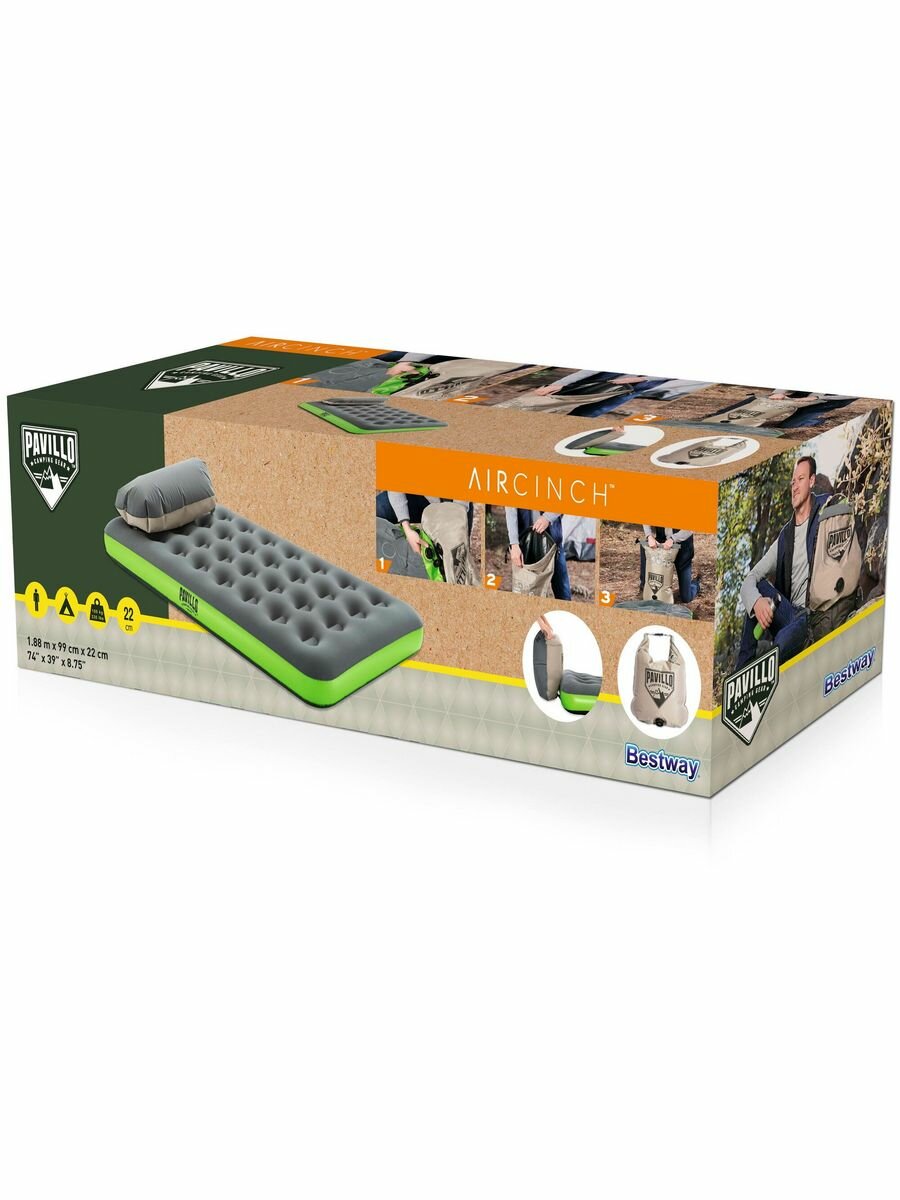 матрас Bestway 67619 BW, Надувной Roll & Relax 188х99х22 см, с многофункциональной подушкой, два ви .