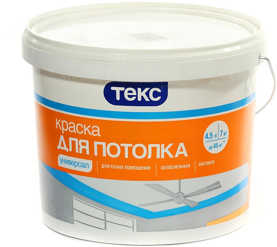 Краска для потолка Текс Универсал, белая, матовая (7кг)