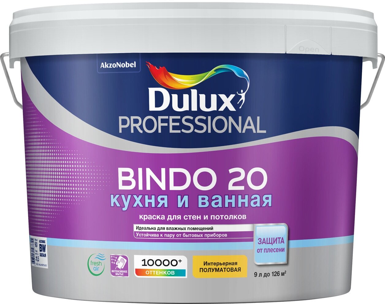 DULUX BINDO 20 кухня И ванная краска для стен и потолков, полуматовая, база BW (9л)