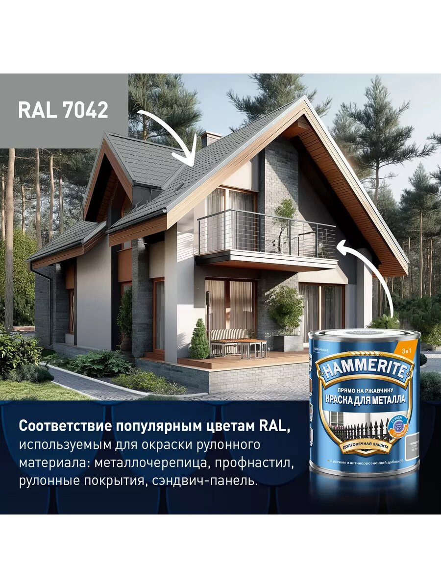 HAMMERITE краска для металла прямо на ржавчину глянцевая RAL 7042 серый 2 л_new