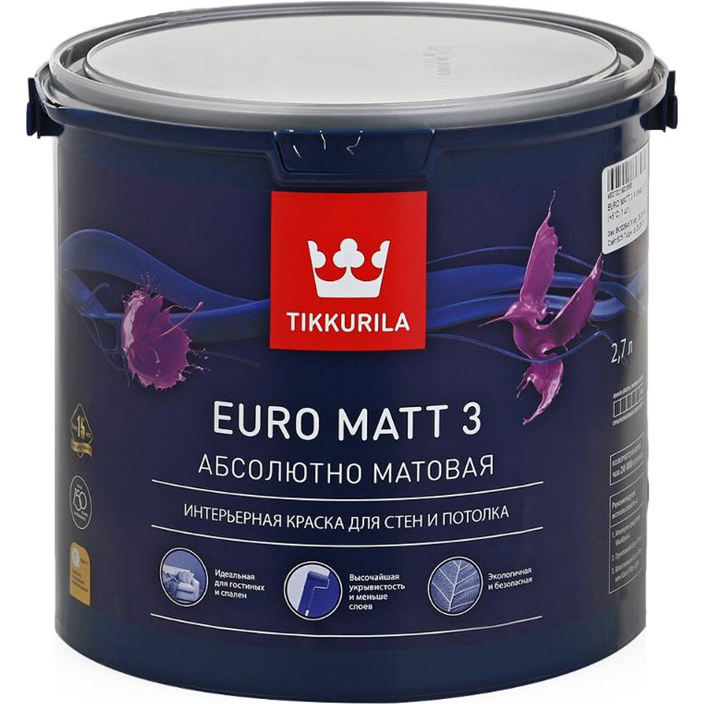 TIKKURILA EURO MATT 3 краска интерьерная для стен и потолков, абсолютно матовая, база C (2,7л)