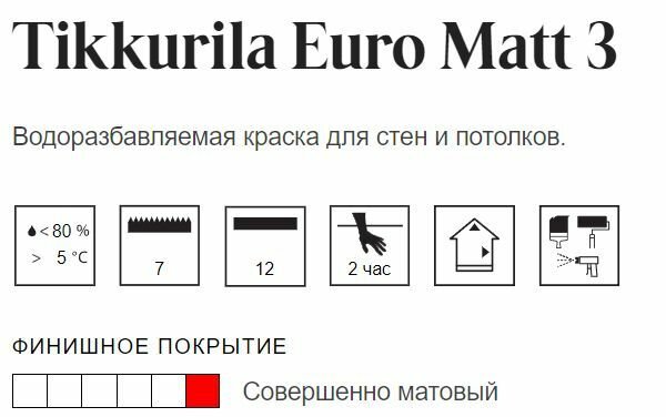 Ниже Вы можете прочитать отзывы на Tikkurila Euro Matt 3 Краска интерьерная для стен и потолков (под колеровку, глубокоматовый, база C, 9 л), ознакомится с подробными характеристиками, посмотреть интересные обзоры и фотографии на Tikkurila Euro Matt 3 Краска интерьерная для стен и потолков (под колеровку, глубокоматовый, база C, 9 л).