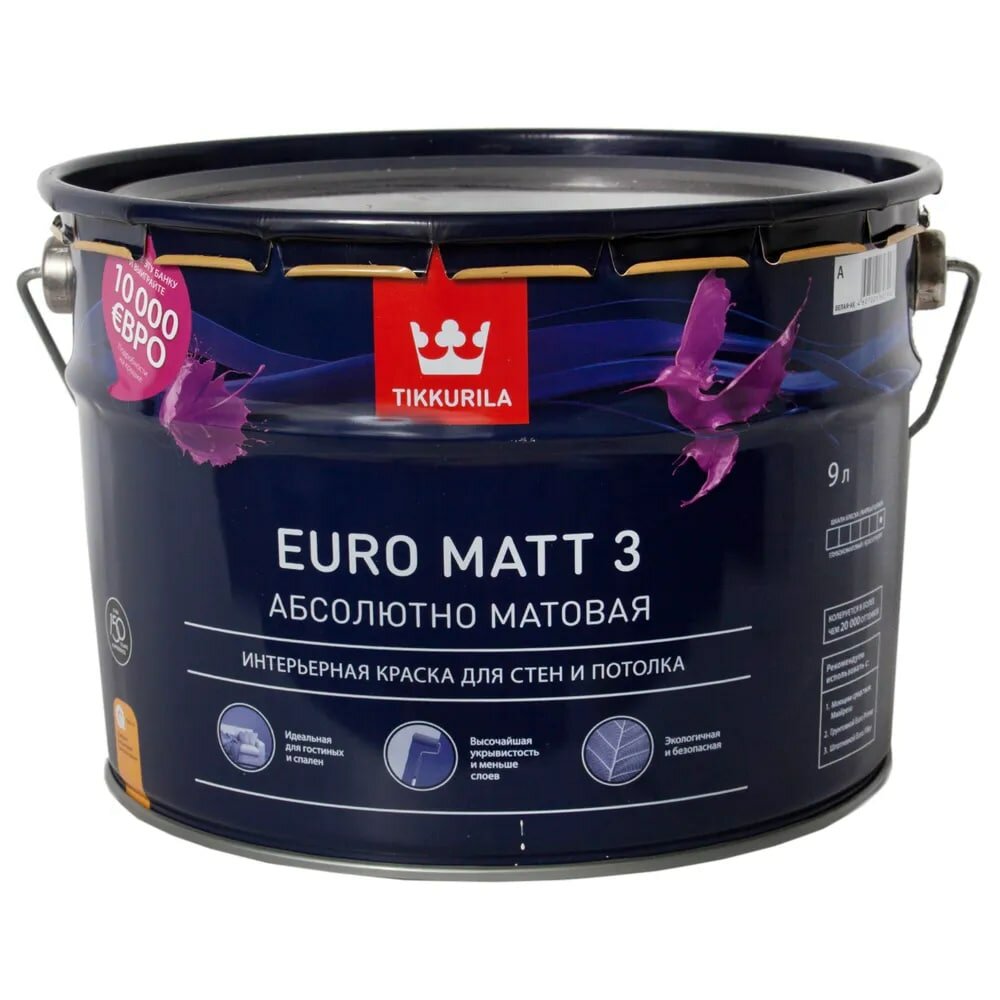 TIKKURILA EURO MATT 3 краска интерьерная для стен и потолков, абсолютно матовая, база A (9л)