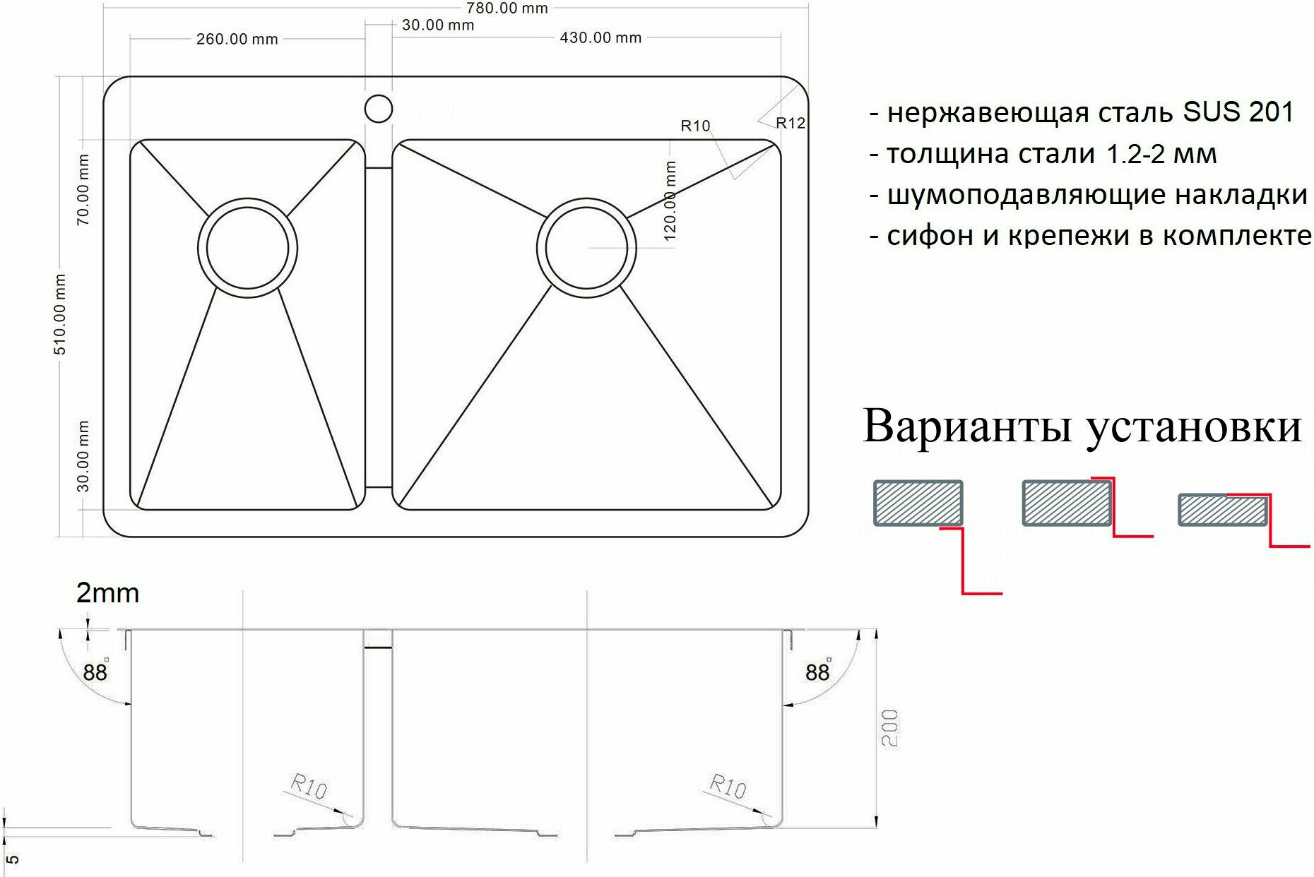 Мойка кухонная ZORG LIGHT ZL R 780-2-510-R ZORG Мойка кухонная ZORG LIGHT ZL R 780-2-510-R