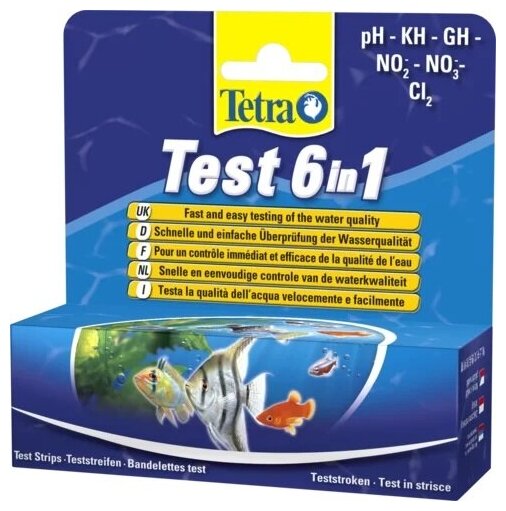 Тест Tetra для воды Test 6in1, 10 экспресс-полосок определяющие показатели pH, KH, GH, NO2, NO3, Cl