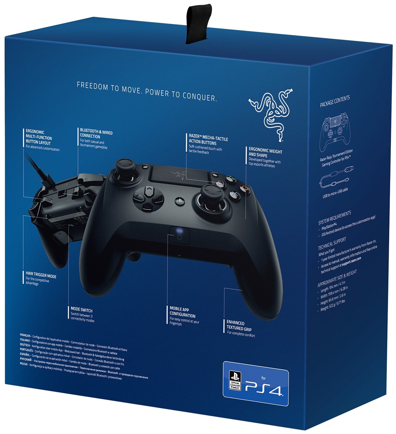 | Отзыв: | Больше двух лет играю на компе геймпадом X-BOX Elite, очень привык к дополнительным кнопкам и весу/качеству, соответственно захотелось нечто под Sony PS4-Pro (ибо родной геймпад конечно совсем ниочем, легкий и слабовато собранный). С трудом нашел Razer Raiju Tournament Edition, потому как единственный беспроводник от RAZER с "нормальным" (для меня) расположением стиков (как на X-BOX), цена показалась вполне приемлемой, те же 10 с копейками тысяч, что и Elite. С настройкой пришлось немного повозиться, но все установилось, настроилось и заработало (интересный конечно ход с настройкой доп-клавиш через смартфон).