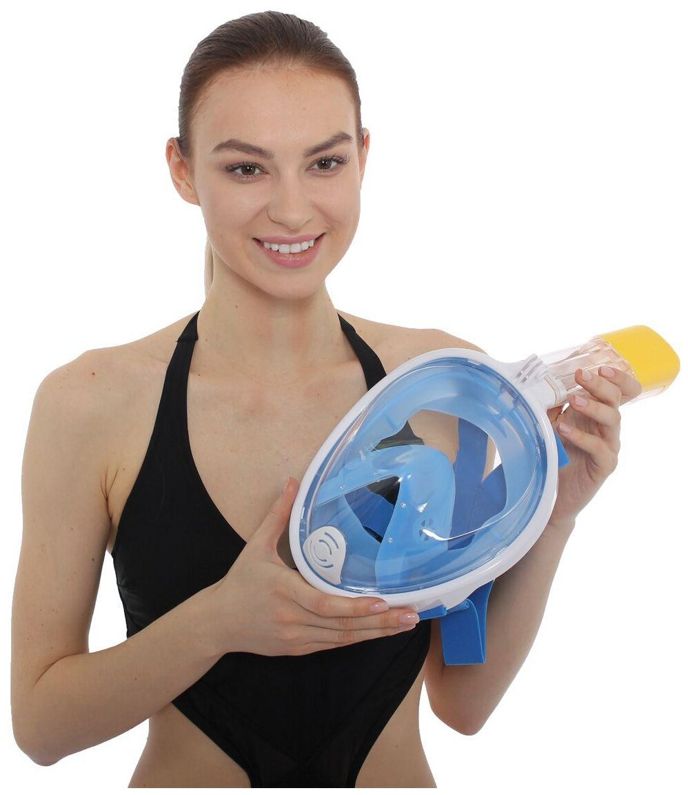 Купить Маска для плавания, снорклинга BRADEX, полнолицевая с трубкой взрослая детская голубая, размер L/XL, беруши в наборе