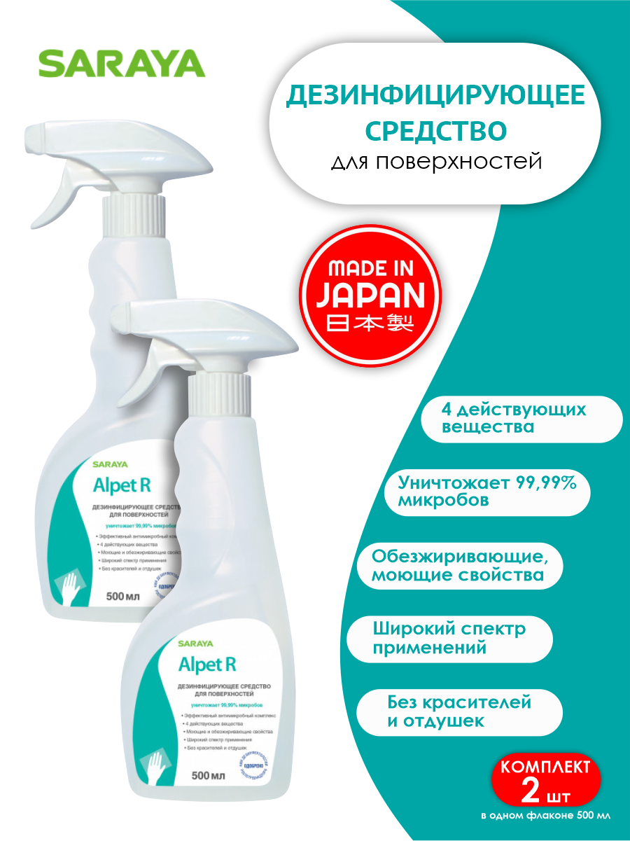 Купить Saraya Alpet R Дезинфицирующее средство для поверхностей, 500 мл, 2 упак