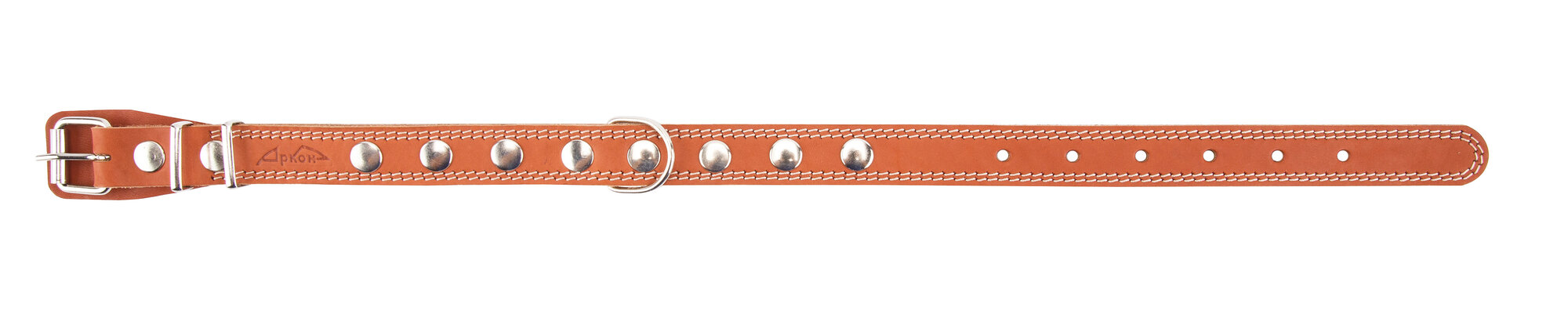 Аркон Ошейник кожаный 25/2, размер 40 - 54 см x 25 мм, цвет коньячный, о25/2к, два слоя кожи, украшения, двойная декоративная строчка