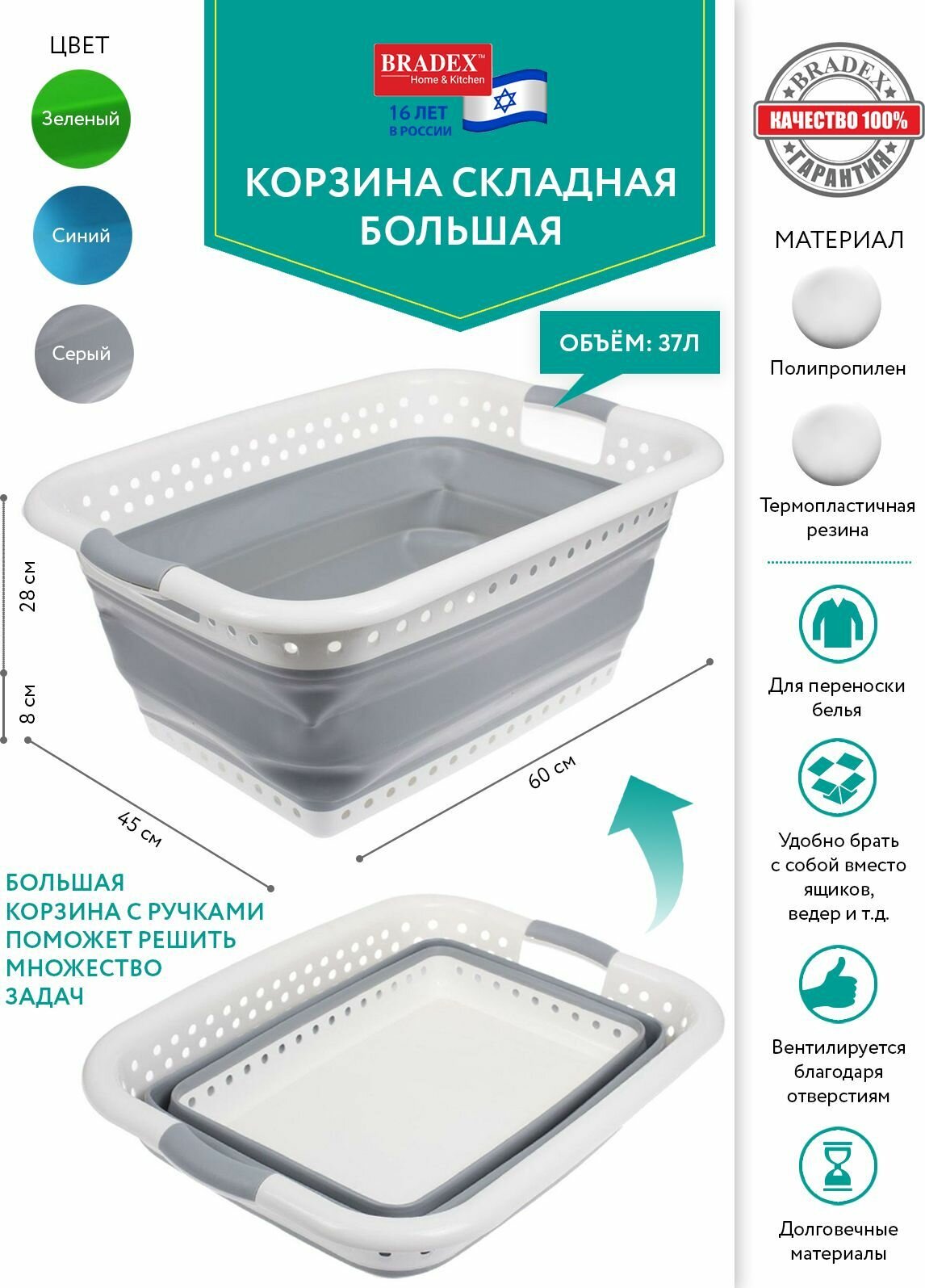 СохранитьКорзина складная, Bradex (товары для дома, 37 л, 60 x 45 x 28 см, зеленый, TD 0537) интересное: