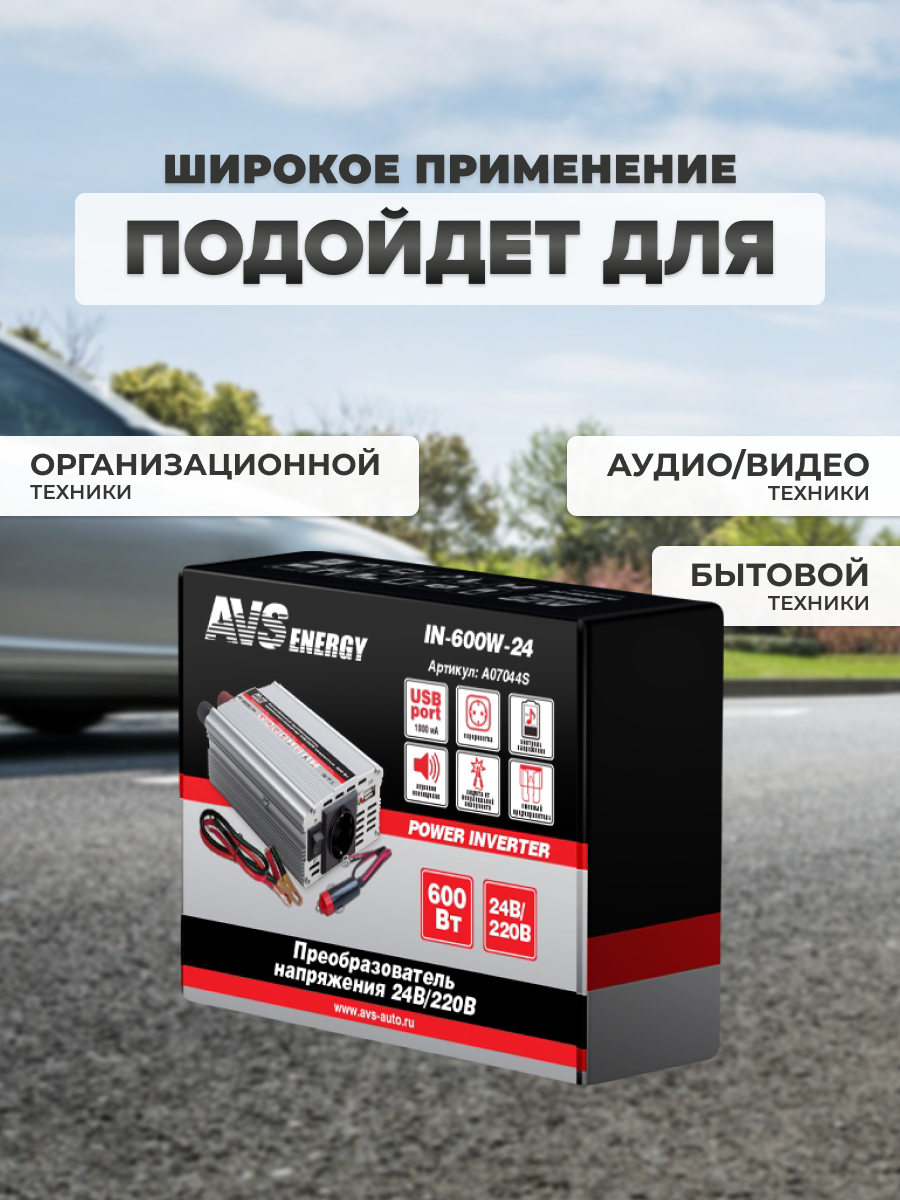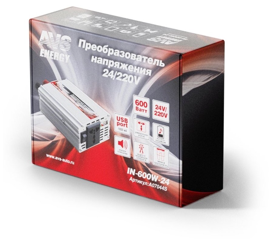 Преобразователь напряжения 24/220V, инвертор автомобильный AVS IN-600W-24, A07044S интересное: