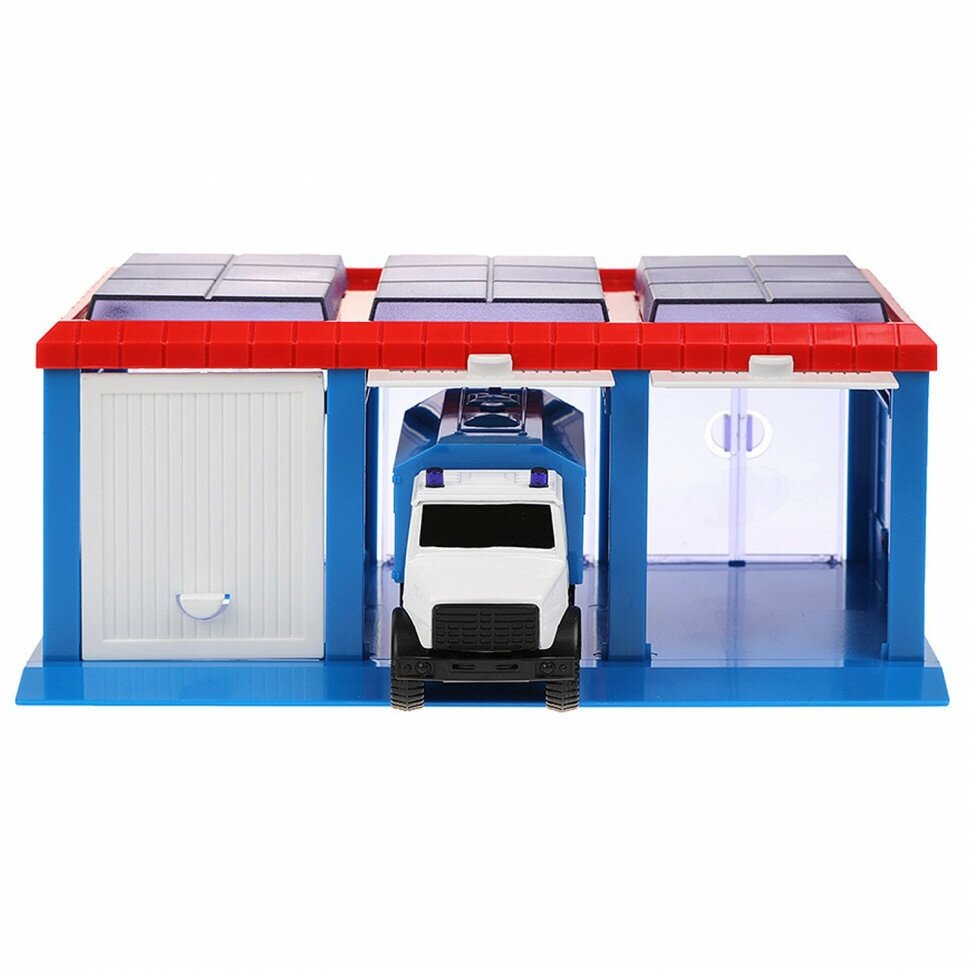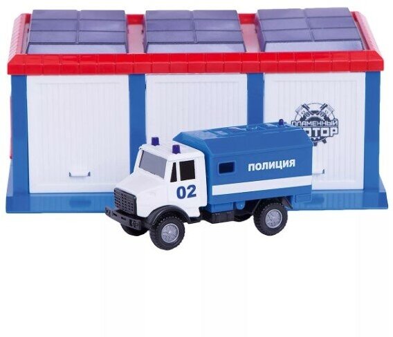 Гараж Полиция (открываются ворота) полицейский фургон 1:43, игровой набор Пламенный Мотор 870270