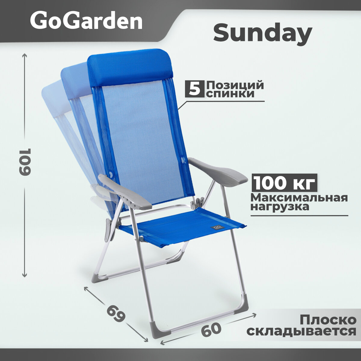 Кресло складное GoGarden SUNDAY, 5 позиций, 69х60х109 см, алюм., цвет синий