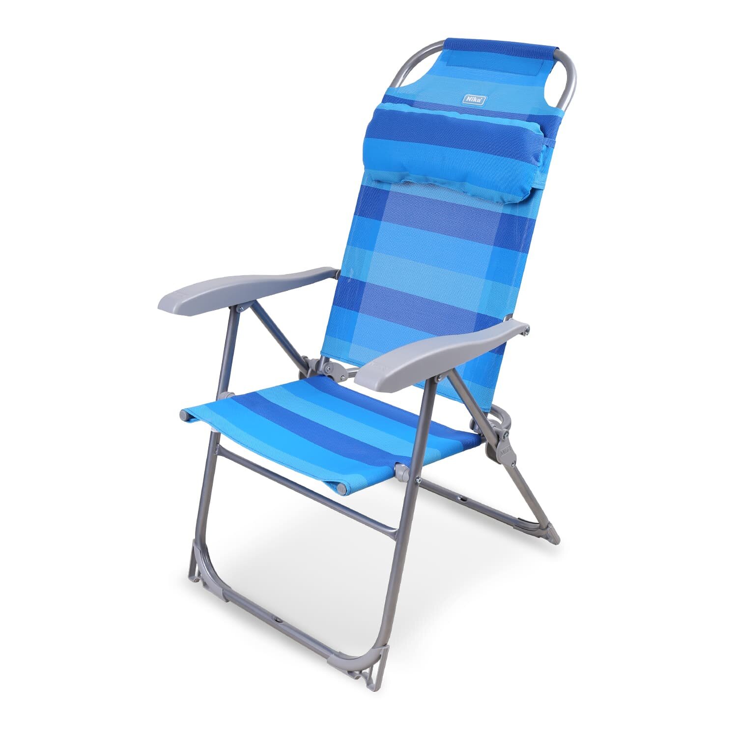 Кресло-шезлонг складное, металл, 75х59х109 см, 120 кг, 8 положений спинки, синее, Nika, К2/С
