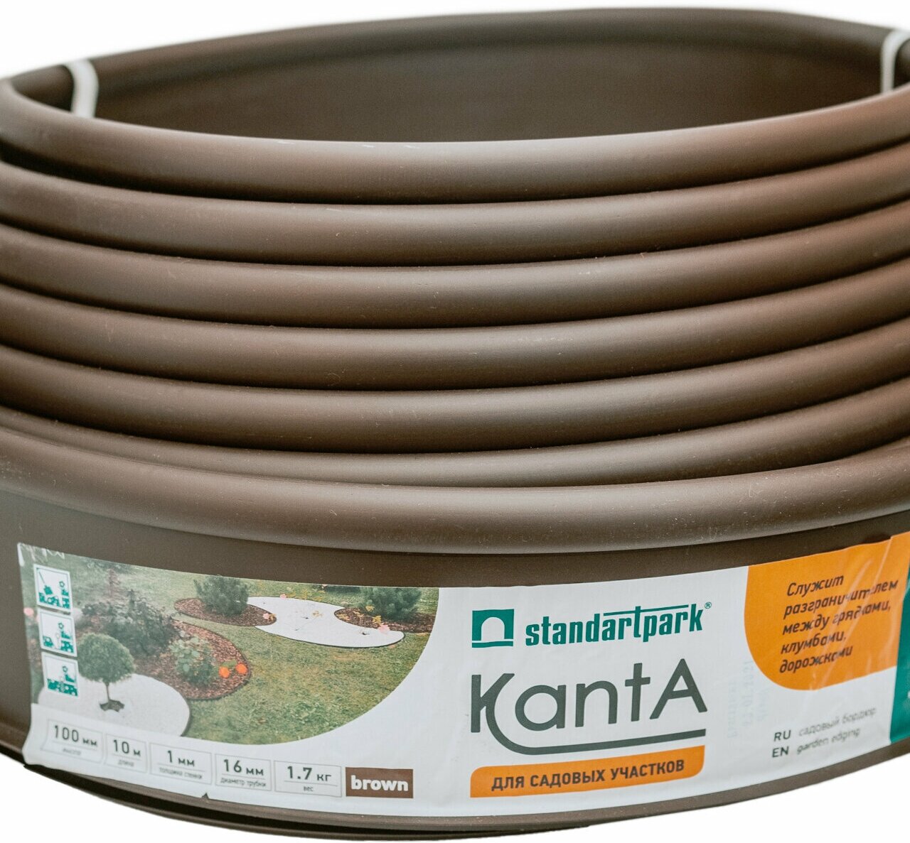 Стандартпарк Канта бордюр садовый пластик (10м х100 мм) коричневый / STANDARTPARK Канта 82552-К бордюр садовый (10000 х100 мм) пластик, коричневый