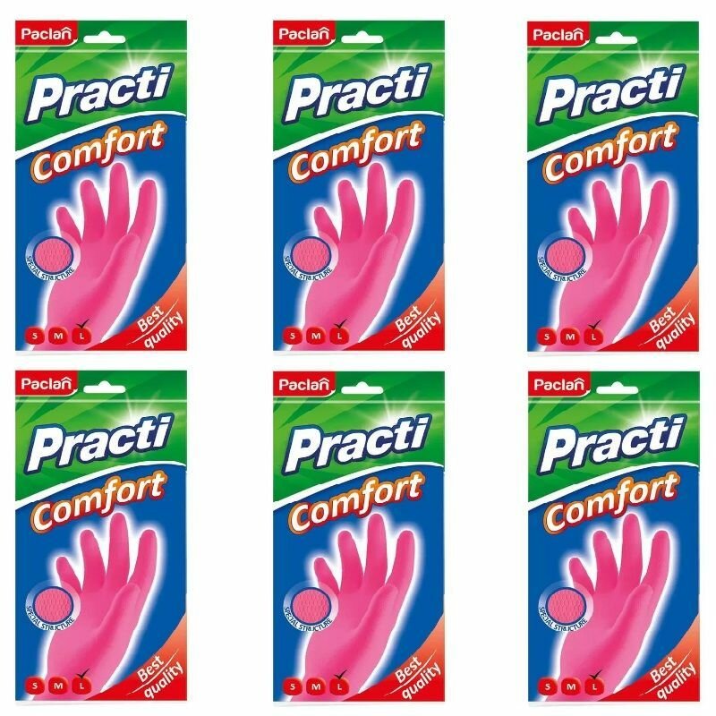 PACLAN PRACTI Comfort Перчатки резиновые, размер (S) розовые, 1 пара