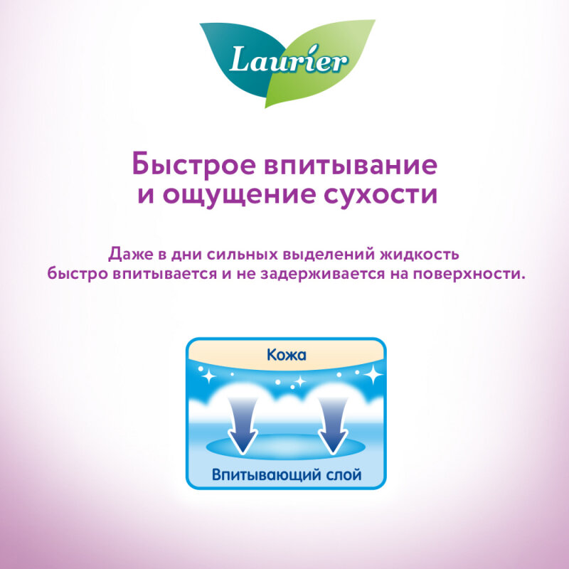LAURIER Женские дневные супертонкие гигиенические прокладки с крылышками 5 капель размер L, 8 шт