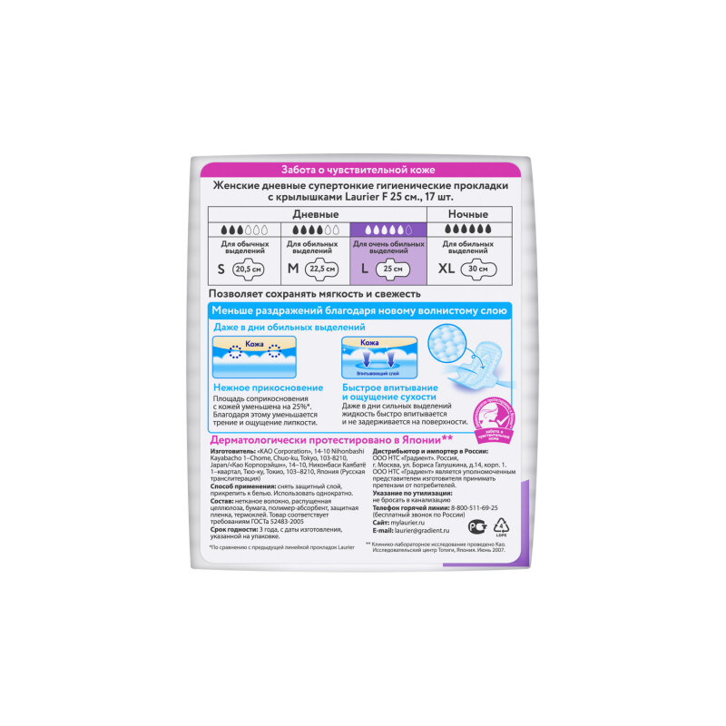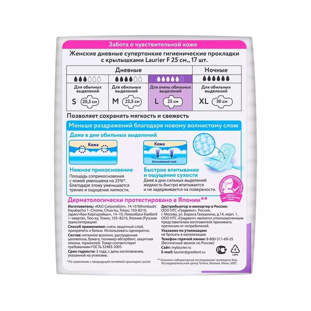 Laurier прокладки F дневные Super 25 см, 5 капель, 17 шт.