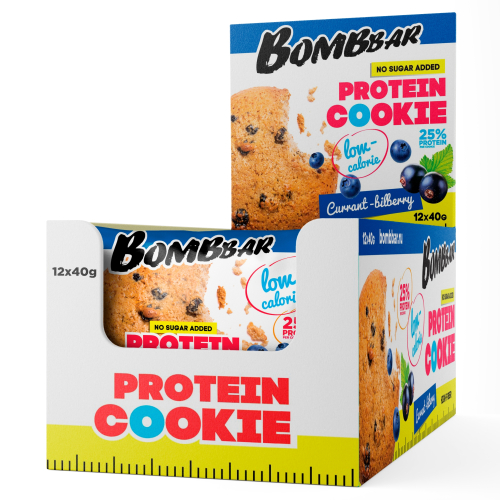 Протеиновое печенье низкокалорийное Bombbar Protein Cookie без сахара "Смородина - Черника", 12шт х 40г