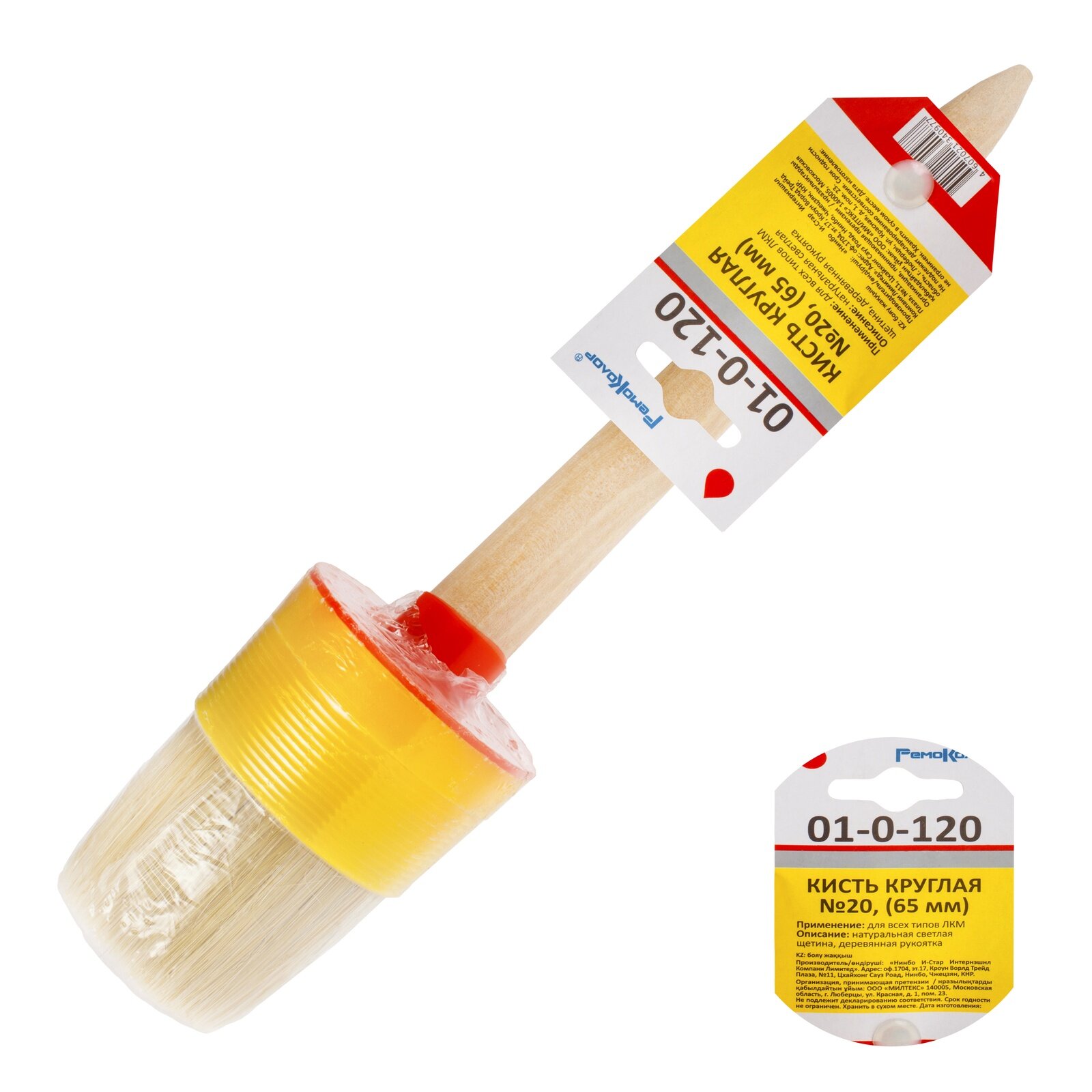 Кисть круглая "РемоКолор" 01-0-120, № 20, диаметр 65 мм, пластиковая оправка