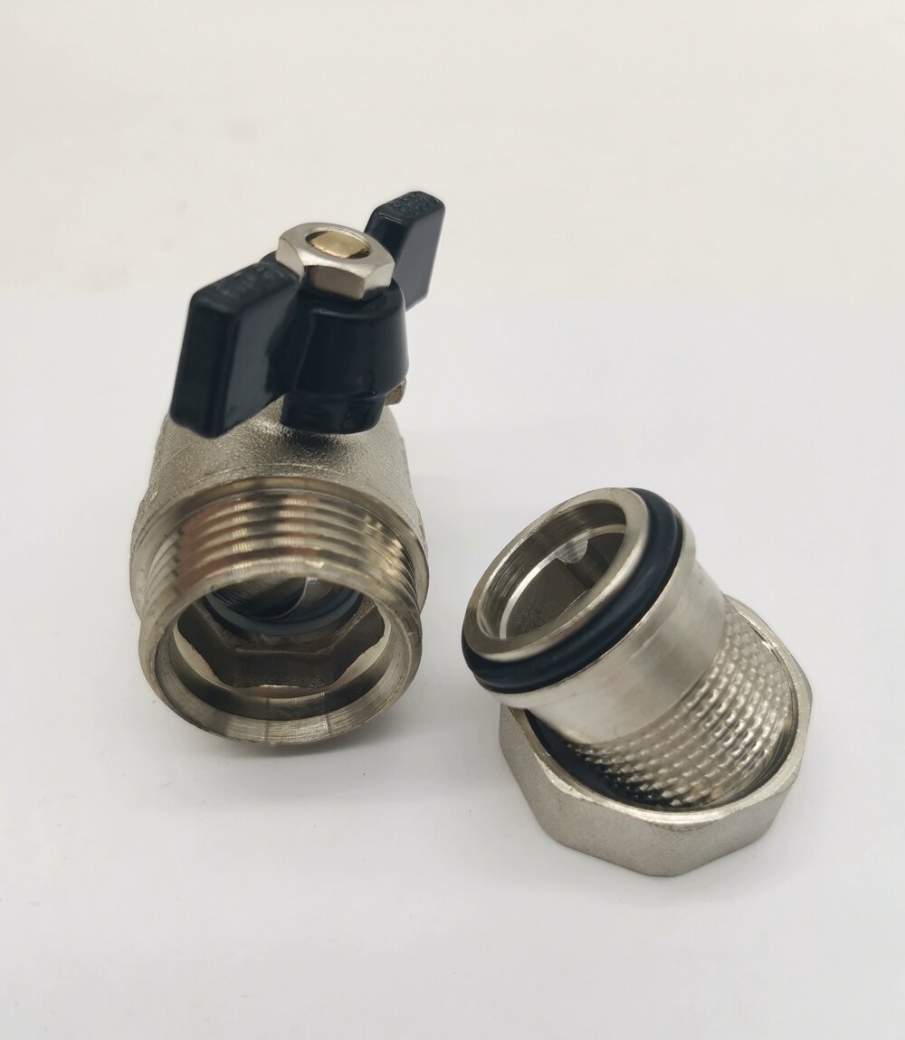 Кран шаровой усиленный прямой с "американкой" (бабочка) никель 1" DE1233X TIM