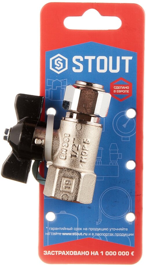 STOUT Кран шаровой с накидной гайкой ВР/накидная гайка ручка бабочка 1/2x1/2 SVB-0009-000015