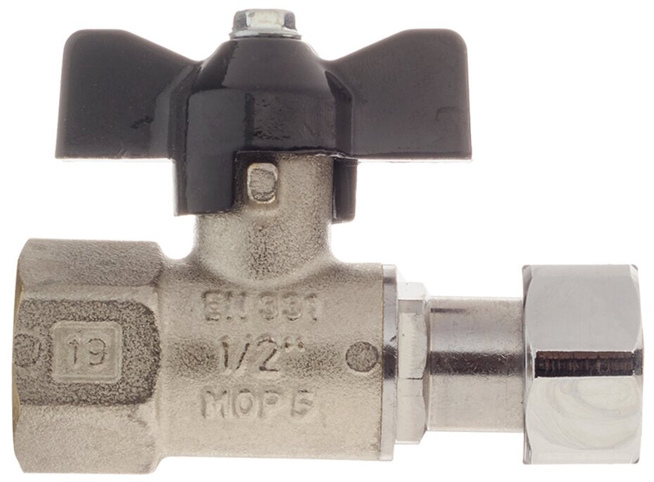 Кран шаровой с накидной гайкой, ВР/накидная гайка, ручка бабочка 1/2"x1/2"