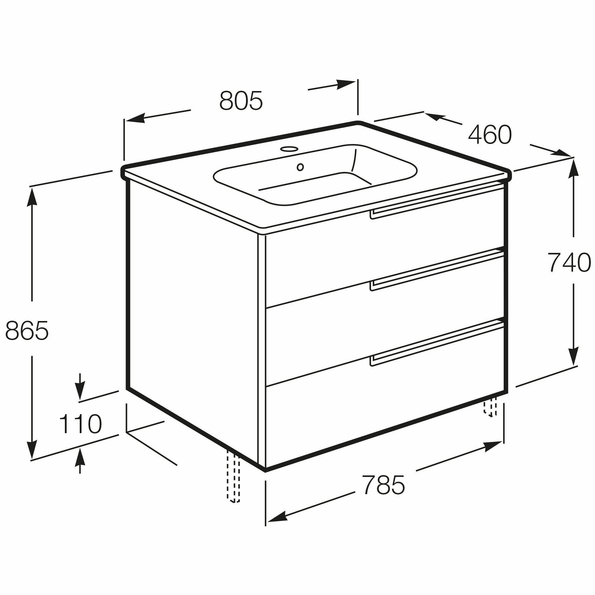 Модуль под раковину Roca Victoria Nord 78,5х46х74см, арт. ZRU9302835, ice edition, с тремя ящиками, ножки в комплекте