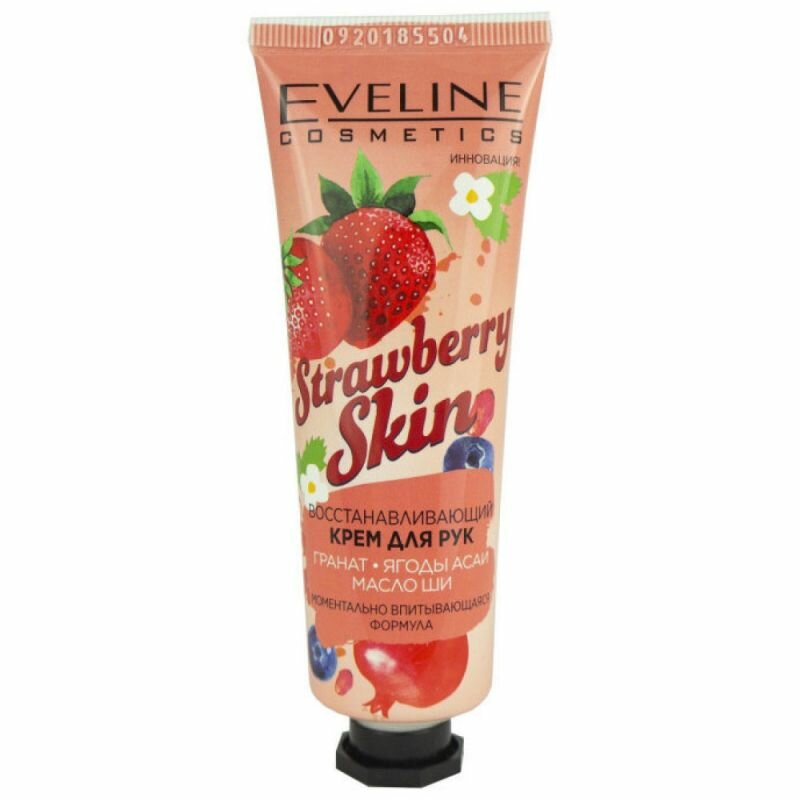 Eveline Cosmetics Крем для рук Strawberry Skin Восстанавливающий гранат, ягоды асаи и масло ши, 50 мл