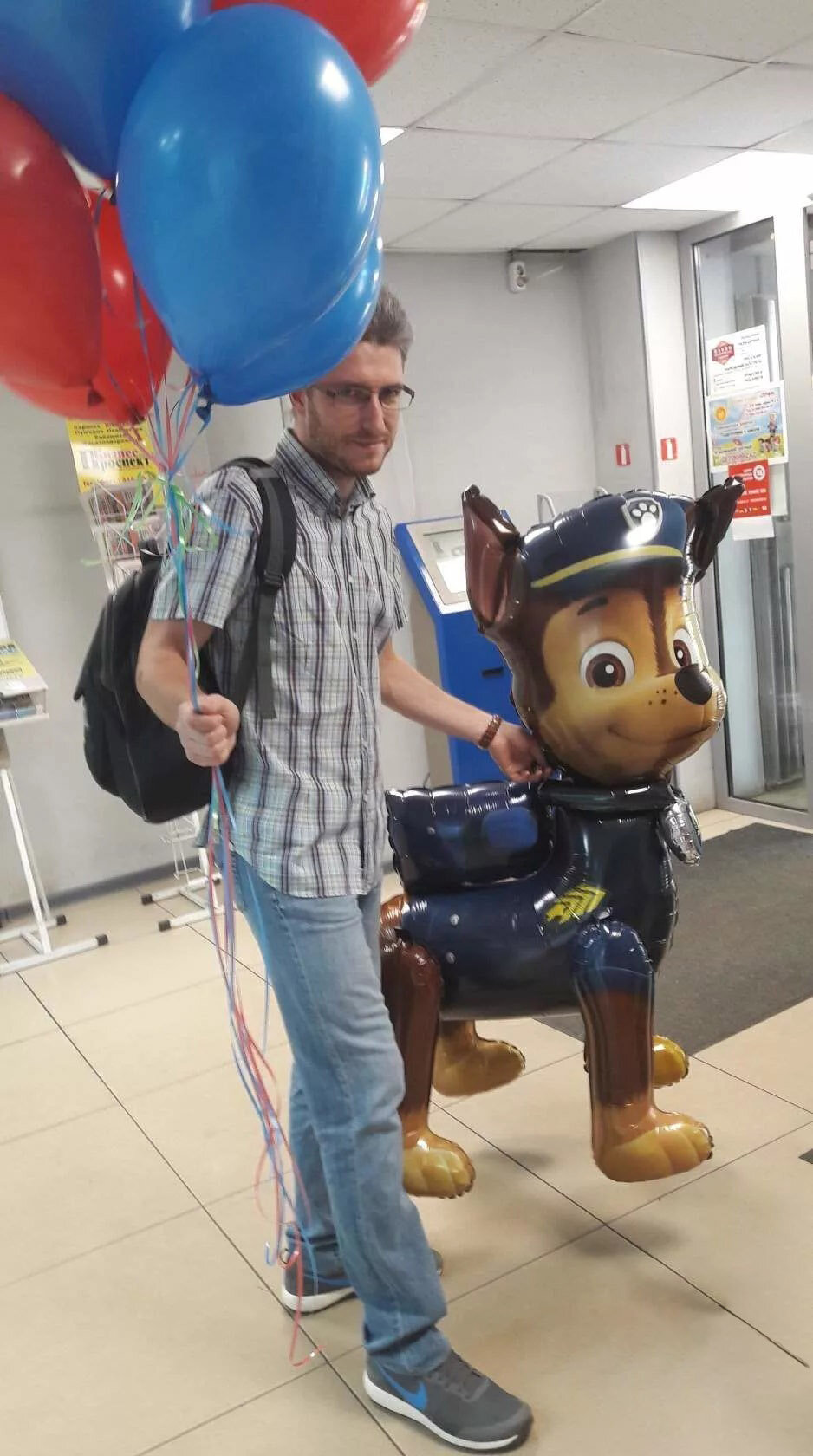 | Минусы: | надувать стоит гелием иначе будет падать. Т.е. стоять по середине комнаты надутй воздухом не будет.
